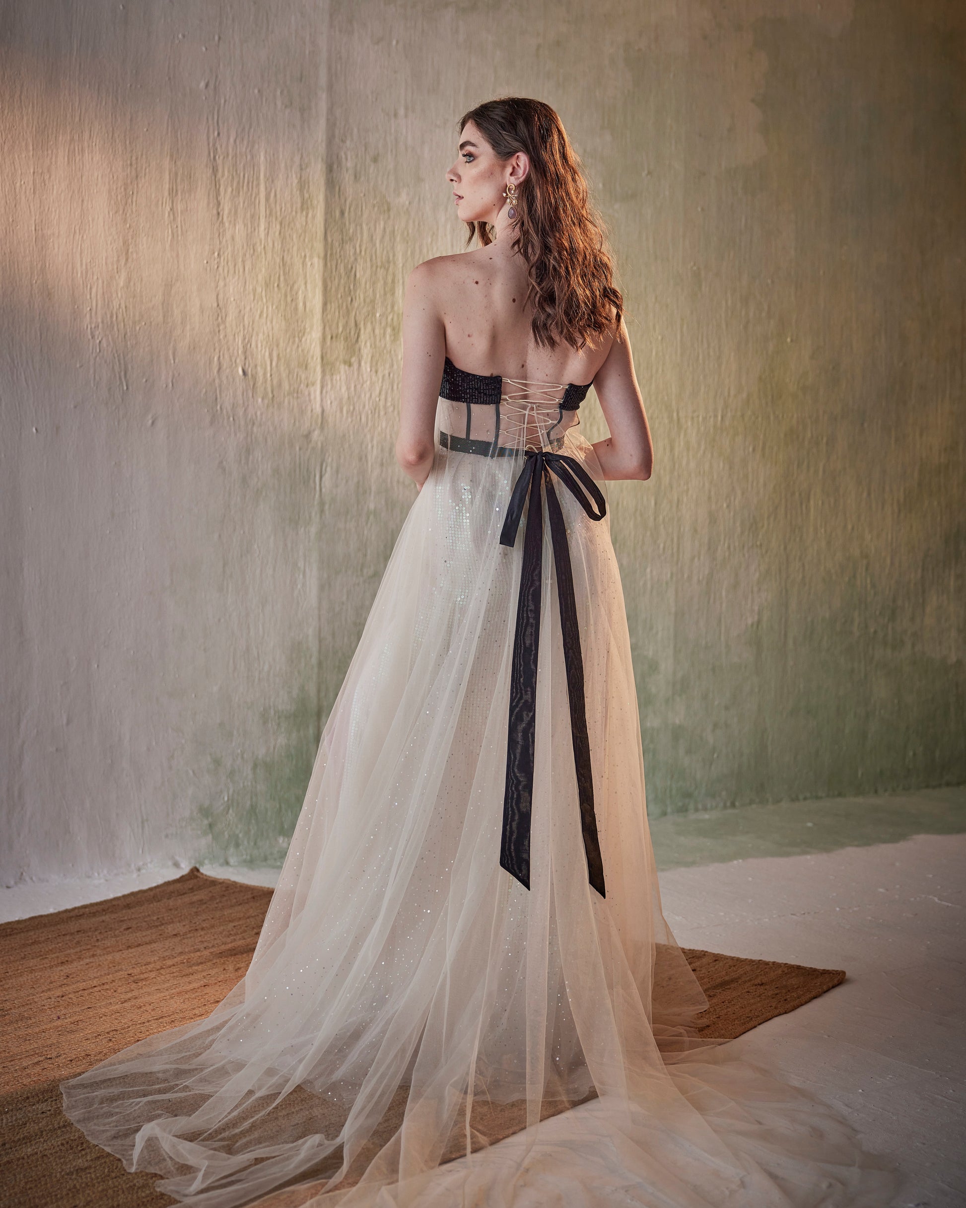 Featuring black and ivory tulle gown